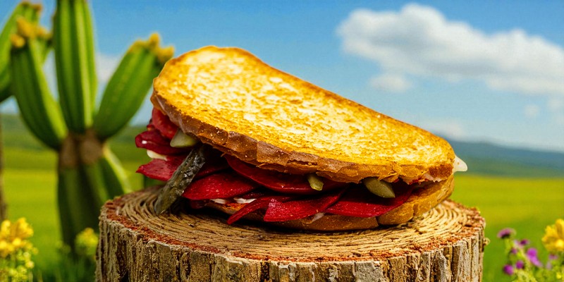 Bazlama ekmeğinde özel kasap sucuk ve kaşar peyniri ile hazırlanır, çıtır şekilde servis edilir.