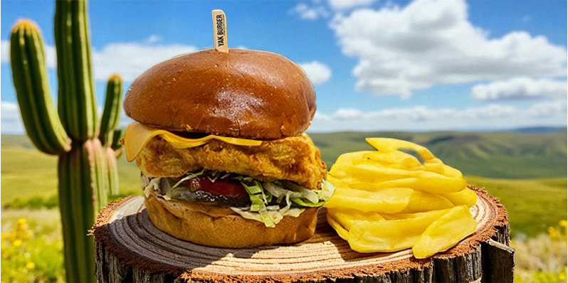 Özel brioche hamburger ekmeğinde panelenmiş tavuk, cheddar peyniri, domates, turşu, marul ve özel sos ile hazı...