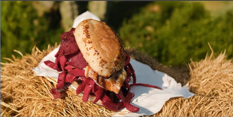 Özel brioche hamburger ekmeğinde özel sos, domates, turşu, 130 gram el yapımı dana köfte, roast beef, cheddar ...